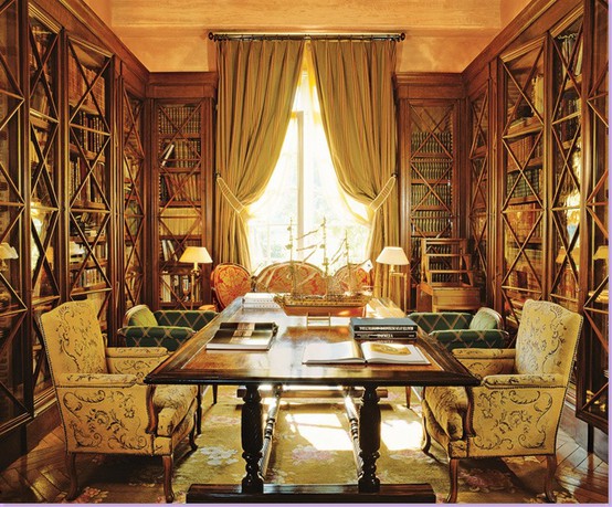 These are all gorgeous. I especially love that little glass enclosed room of books and the glass front bookcases with the X mullions. What a beautiful way to protect your collection.